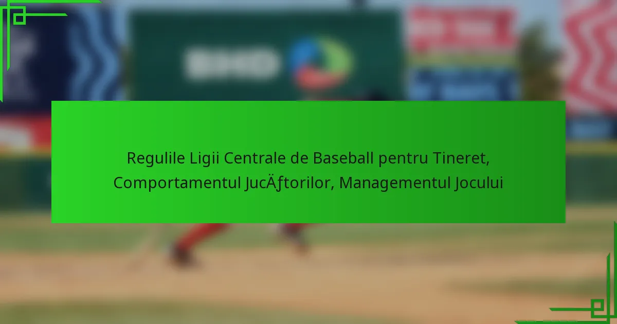Liga Centrală de Baseball pentru Tineret a implementat reguli esențiale pentru a promova fair play-ul, siguranța și plăcerea tuturor participanților. Aceste linii directoare cuprind reglementările jocului, eligibilitatea jucătorilor și gestionarea accidentărilor, subliniind importanța respectului și integrității între jucători, antrenori și oficiali. O gestionare eficientă a jocului se bazează pe o ierarhie structurată care asigură desfășurarea lină a activităților și o comunicare clară în timpul jocurilor.