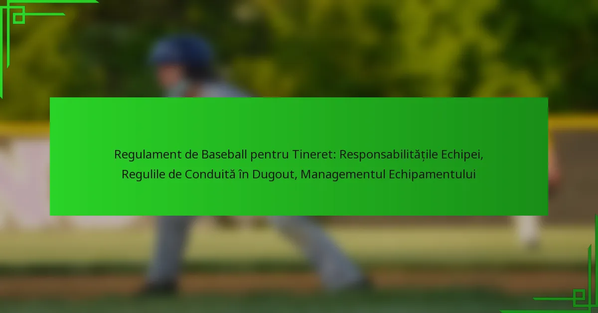 Regulament de Baseball pentru Tineret: Responsabilitățile Echipei, Regulile de Conduită în Dugout, Managementul Echipamentului