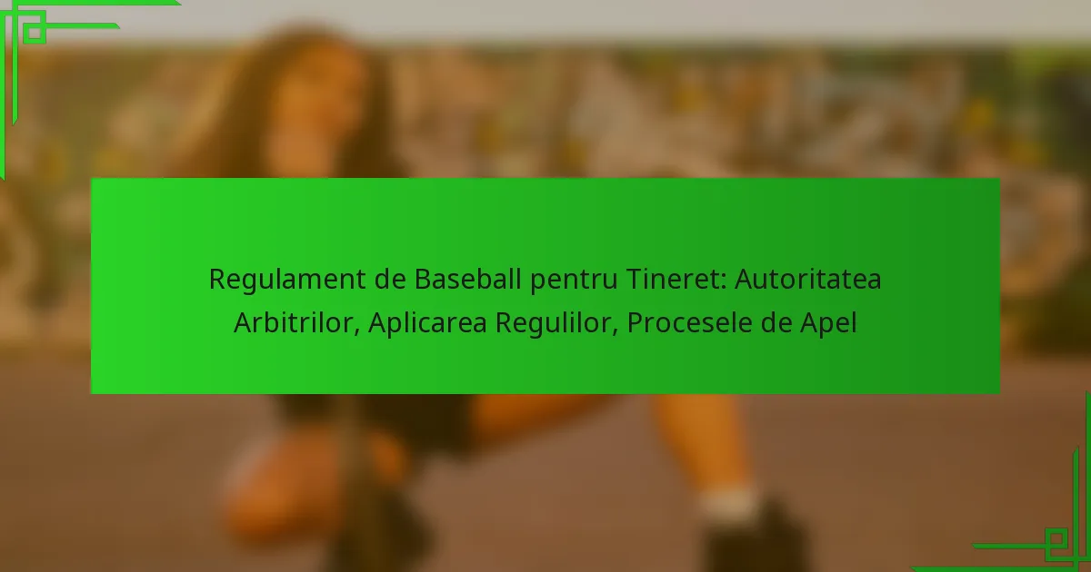 Apelarea deciziilor arbitrilor în baseballul juvenil implică un proces structurat care permite echipelor să conteste deciziile luate în timpul jocurilor. Acest proces include pași specifici pentru depunerea unui apel, documentația necesară, termenele de depunere și rezultatele posibile.