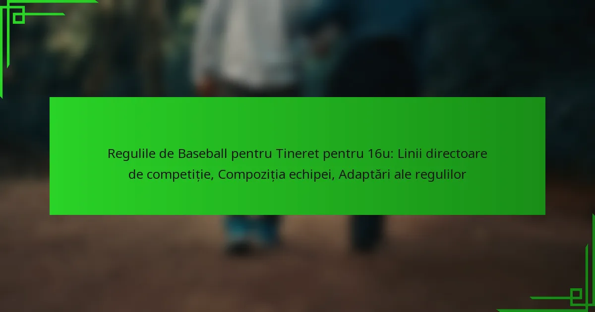 Regulile competiției pentru baseballul juvenil 16u stabilesc cadrul pentru desfășurarea jocului, compunerea echipelor și protocoalele de siguranță. Aceste reguli asigură un mediu corect și captivant pentru tinerii sportivi, promovând dezvoltarea abilităților și fair-play-ul.