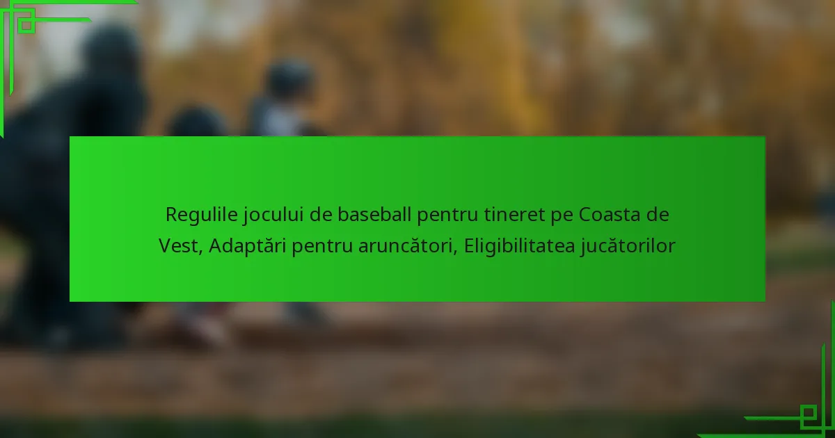 Baseballul juvenil pe Coasta de Vest este reglementat de reguli de joc unice care diferă de standardele naționale, ceea ce face important pentru jucători, antrenori și părinți să se familiarizeze cu aceste reglementări. În plus, adaptările în aruncare se concentrează pe siguranța jucătorilor și dezvoltarea abilităților, încorporând reguli bazate pe vârstă și limitări ale numărului de aruncări. Înțelegerea criteriilor de eligibilitate pentru jucători, inclusiv limitele de vârstă și cerințele de rezidență, este esențială pentru a asigura o participare corectă în ligile locale.